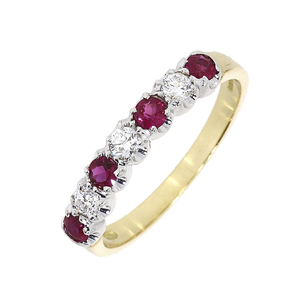 18ct Yellow Gold 7 Stone Ruby and Diamond Eternity Ring