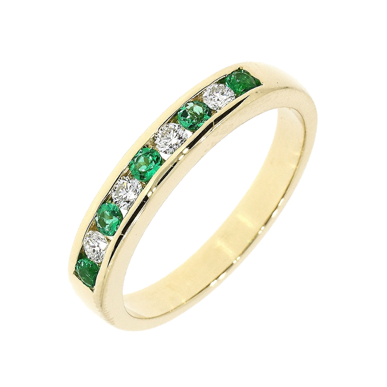 18ct yellow gold 9 stone emerald and diamond half eternity ring