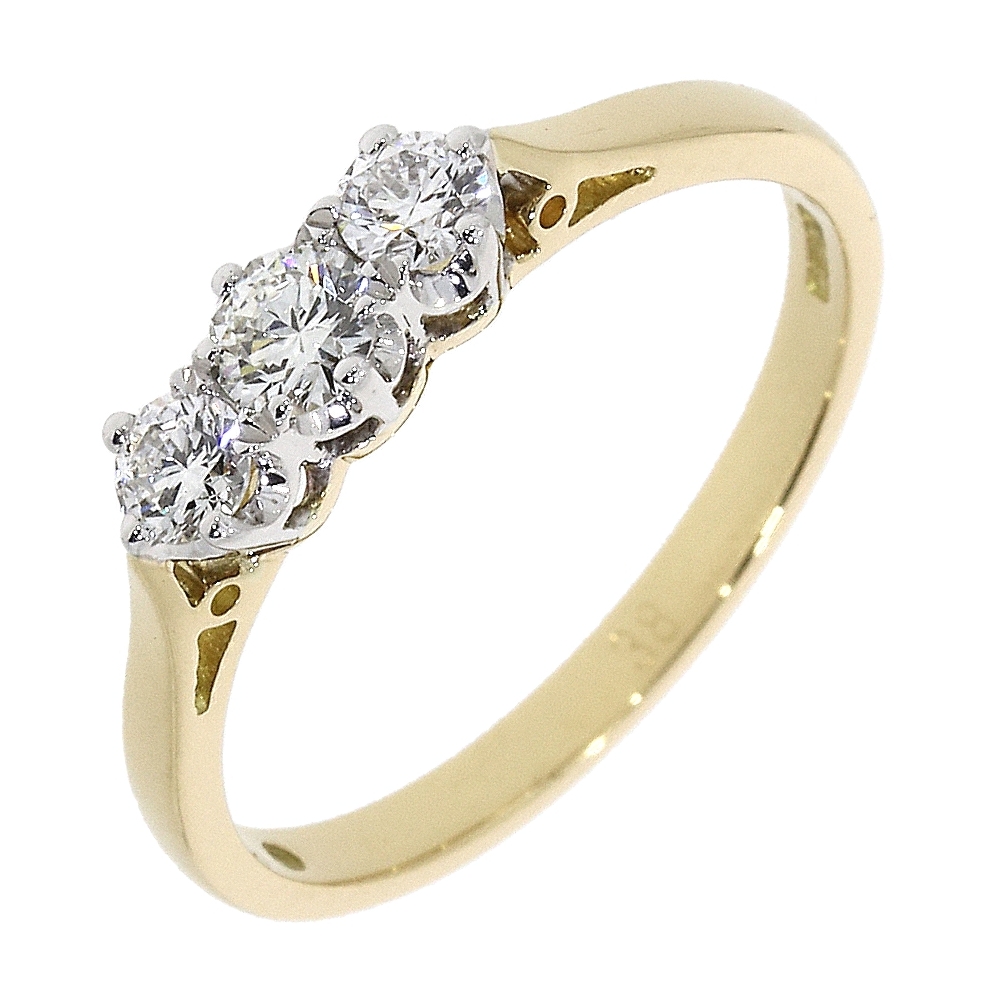 18ct Yellow Gold, Three Stone Diamond ring. 0.35ct.