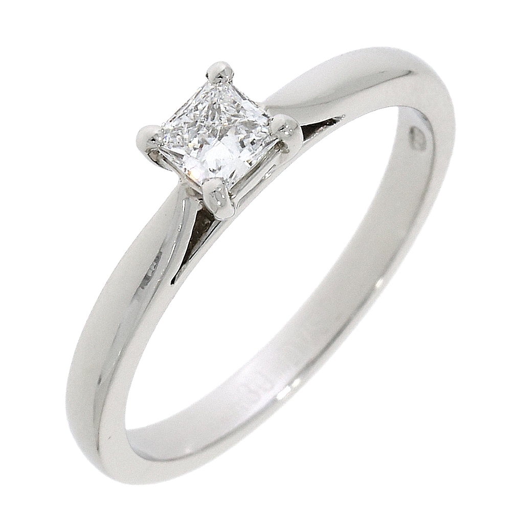 Platinum Single Stone, Princess Cut, 0.26ct Diamond Four Claw Engagement Ring.